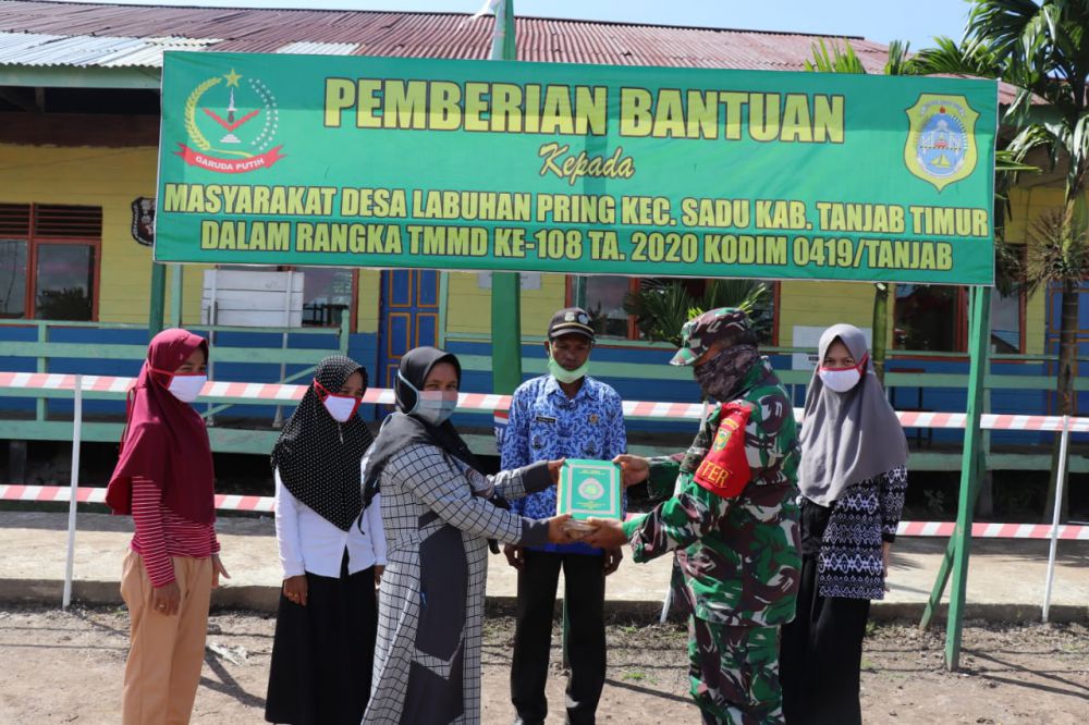 Mewujudkan hal tersebut, Satgas TMMD membatu membagikan 20 buah Al Qur’an Juz Amma untuk anak-anak, Desa Labuhan Pering, Rabu (22/12/2020).