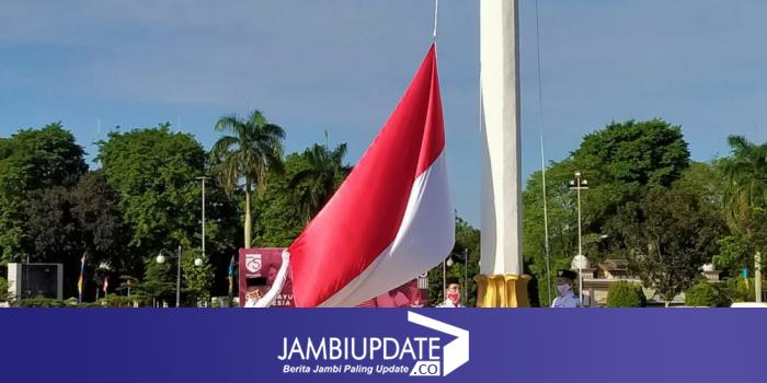 JAMBIUPDATE.CO, JAMBI - Upacara pengibaran duplikat sang saka merah putih dalam rangka peringatan HUT Kemerdekaan RI Ke 75 tahun 2020 digelar di lapangan upacara kantor Gubernur Jambi. Upacara pada pagi Senin (17/8) tetap menerapkan standar protokol kesehatan covid-19.