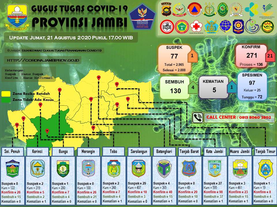 BACA JUGA : Rekor Baru, Positif Covid19 Jambi Bertambah 21 Jadi 271 Kasus, Meninggal Tambah 1 Jadi 5 Orang