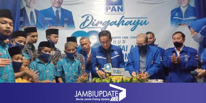 JAMBIUPDATE.CO, JAMBI- Partai Amanat Nasional (PAN) Provinsi Jambi menggelar syukuran HUT PAN ke 22. Acara ini dirangkai dengan pemotongan tumpeng bersama anak yatim-piatu, Minggu (23/8).