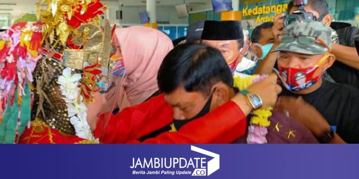 JAMBIUPDATE.CO, JAMBI- Calon Wakil Gubernur Jambi, Syafril Nursal mendarat di bandara Sultan Taha Jambi siang ini, Jumat (4/9). Jendral polisi bintang dua ini disambut sejumlah tokoh masyarakat dan tim pemenangan yang sudah hadir di bandara sejak pagi tadi.