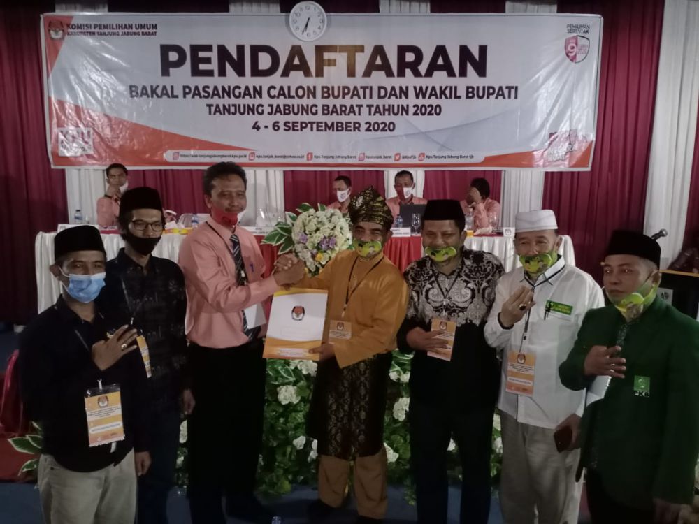"Hari ini telah dilakukan penelitian dan kelengkapan persyratan dokumen bakal paslon, pencalonan dan calon bupati dan wakil bupati Tanjabbar 2020, Muklis - Supardi dinyatakan lengkap dan memenuhi syarat dan diterima KPU Kabupaten Tanjabbar," terang Ketua KPU Tanjabbar, Hairuddin, Jumat (4/9).