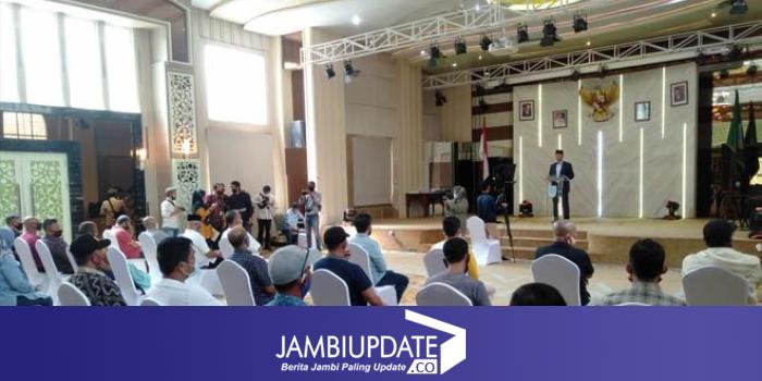 JAMBIUPDATE.CO,JAMBI-Walikota Jambi Sy Fasha yang merupakan bakal calon gubernur Jambi menggelar jumpa pers di Aula Griya Mayang rumah dinas Walikota Jambi, Minggu sore (9/6).