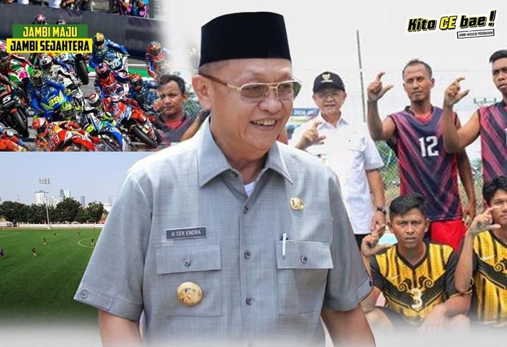 Menjawab tantangan terkait prestasi olahraga di Bumi Sepucuk Jambi Sembilan Lurah, Calon Gubernur (Cagub) Jambi Drs H Cek Endra mengaku sudah menyiapkan program dalam visi misi Jambi Cerah 2024.
