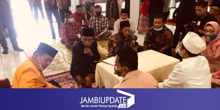 JAMBIUPDATE.CO, JAMBI - Meski sedang bersiap menghadapi debat kandidat yang akan digelar nanti malam, Senin 9 November 2020, Calon Bupati Tanjung Jabung Timur (Tanjabtim), H. Romi Hariyanto masih menyempatkan hadir sebagai saksi di pernikahan sahabatnya Ferdy Almunanda di Masjid Nurussalam Talang Banjar Kota Jambi.