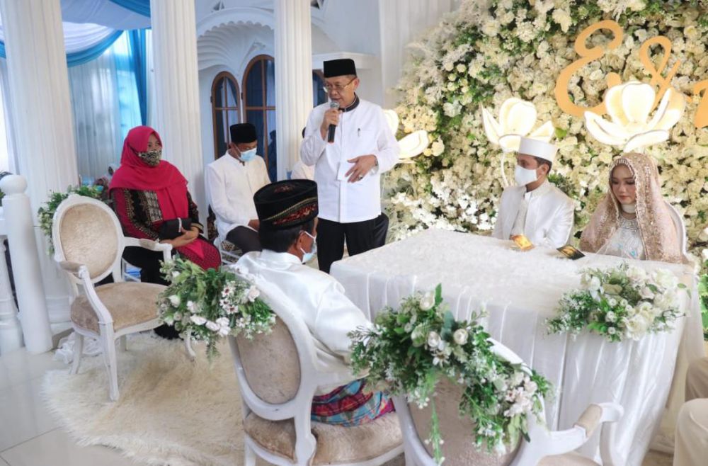 Rosita Endra tampak khidmat mendampingi sang suami menjadi saksi pernikahan Endah Fitri dengan kekasih hatinya dr Alles Firmansyah, Jumat (27/11/2020).