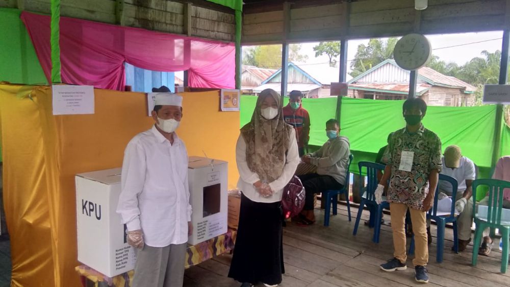 Dalam hal ini H. Mustakim berkesempatan didampingi oleh sang istri, nyoblos di TPS 3 Desa Pematang Rahim, Kecamatan Mendahara Ulu.