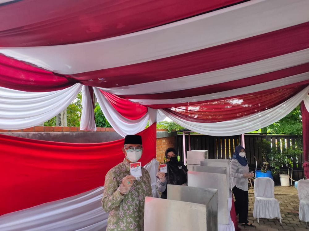 JAMBIUPDATE.CO,JAMBI - Walikota Jambi Syarif Fasha menyalurkan hak pilihnya di TPS 08 Telanaipura (9/12). Ia didampingi istri dan anak sulungnya. Mereka mencoblos tepat pukul 09.05 WIB.