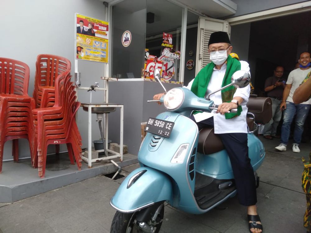 Sebelum proses hitung cepat dimulai CE pergi ke Masjid sekira pukul 12.05 Wib. Dengan mengenakan baju koko warna putih dan peci hitam CE pergi sendiri ke Masjid dengan motornya.