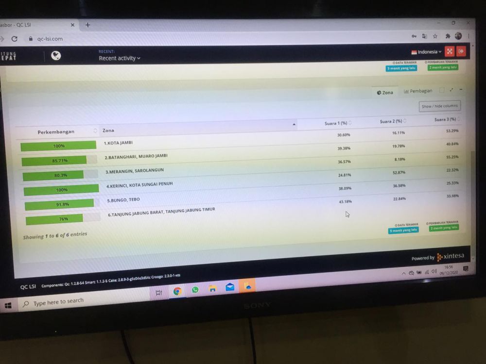 Rilis tim Al Haris-Sani, dari LSI diketahui bahwa Al Haris-Sani menang di Dapil Kota Jambi, Dapil Batanghari-Muaro Jambi dan Dapil Merangin-Sarolangun