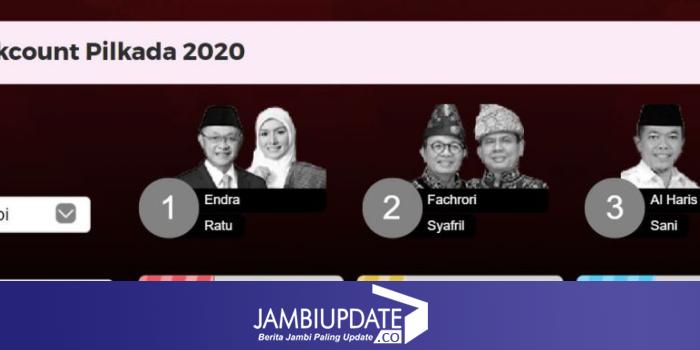JAMBIUPDATE.CO, JAMBI - Pasangan Cagub-Cawagub Jambi, Al Haris-Abdullah Sani, dengan meyakinkan menang Pilgub Jambi 2020 berdasar quick count Lingkaran Survei Indonesia (LSI) dengan data masuk 99,38 persen, update data pukul 20.27 WIB, Rabu 9 Desember 2020.