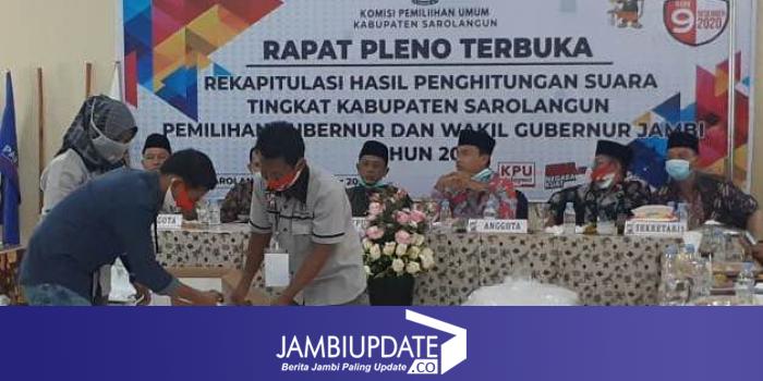 JAMBIUPDATE.CO, SAROLANGUN - KPUD Sarolangun sudah selesai melaksanakan pleno terbuka rekapitulasi hasil penghitungan suara.