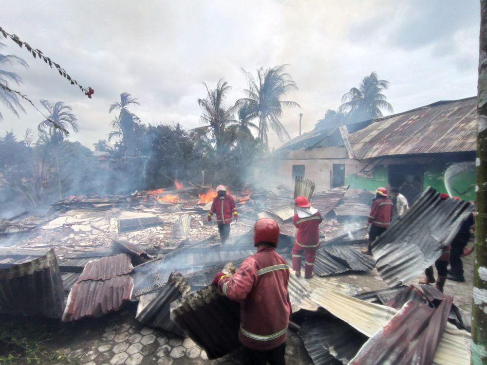 Di lokasi sendiri, personel pemadam kebakaran masih berupa memadamkan api yang masih berkobar.