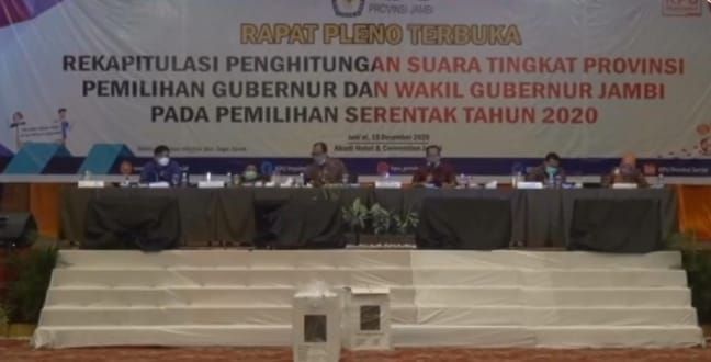JAMBIUPDATE.CO, JAMBI- Pleno rekapitulasi suara tingkat provinsi untuk kontestasi politik Pilgub Jambi 2020, kembali berlanjut hari ini (19/12).