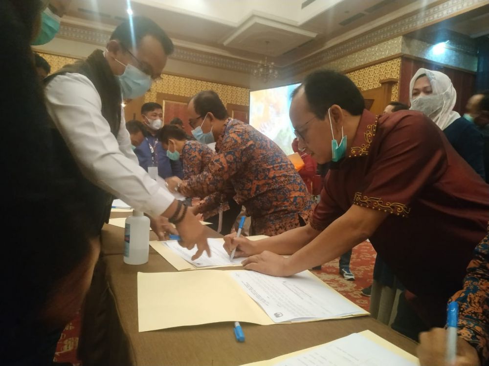 JAMBIUPDATE.CO, JAMBI- Rapat pleno rekapitulasi suara calon gubernur dan wakil gubernur Jambi di Abadi Convention Center (ACC) selesai digelar, Sabtu (19/12).