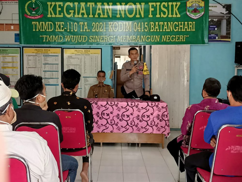 "Keamanan dan ketertiban (Kambtimas). Saya berbicara itu, juga menyadarkan warga tentang hukum," ungkapnya, usai menjadi narasumber dalam program TMMD ke 110 Kodim 0415/Batanghari, Selasa (9/3/2021).