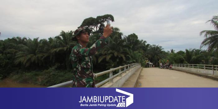 JAMBIUPDATE.CO, JAMBI - Lantaran susah sinyal, Satgas TMMD ke 110 Kodim 0415/Batanghari pergi ke jembatan di Desa Sungaiterap untuk mencari sinyal, Rabu (10/3/2021) pagi.