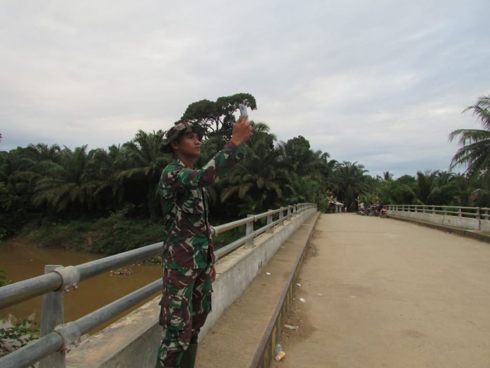 Salah satu Satgas TMMD, Prada Maulana, mengatakan, infonya di Desa Sungaiterap, di jembatan inilah yang sinyalnya kuat.