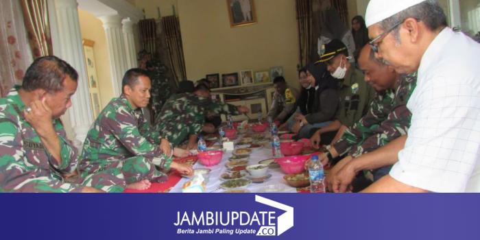 JAMBIUPDATE.CO, JAMBI - Bupati Muaro, Hj Masnah Busro dan Dandim 0415/Batanghari, Kolonel J Hadiyanto, makan siang bersama di rumah Kades Sungaiterap, Sairozi, Sabtu (13/3/2021).
