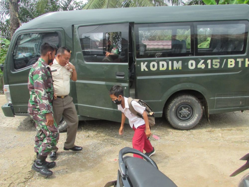 Ditambahnya, anak-anak SD itu pun senang dengan menaiki mobil dinas Kodim 0415/Batanghari.