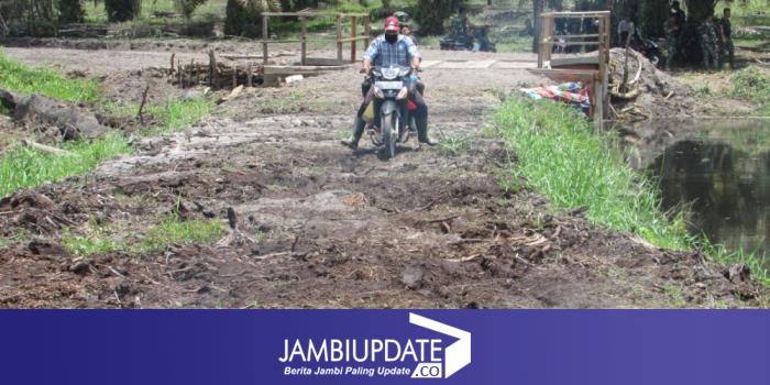 JAMBIUPDATE.CO, JAMBI - Warga Desa Sungaiterap, bersama Satgas TMMD ke 110 Kodim 0415/Batanghari, uji coba jalan pembukaan penghubung dua desa, Minggu (14/3/2021).