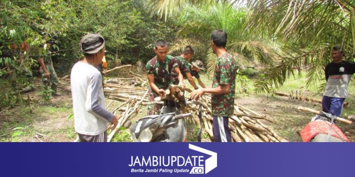 JAMBIUPDATE.CO, JAMBI - Guna percepatan pembuatan galar di lahan gambut, Satgas TMMD ke 110 Kodim 0415/Batanghari, kembali melakukan gotong royong di hutan, Kamis (18/3/2021).
