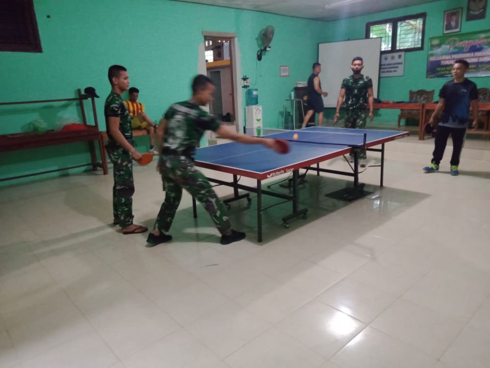 "Kita olahraga untuk mencegah peredaran Covid-19. Kita bermain tenis meja bersama Satgas TMMD di kantor Desa Mekarjaya," ungkapnya, Minggu (21/3/2021).