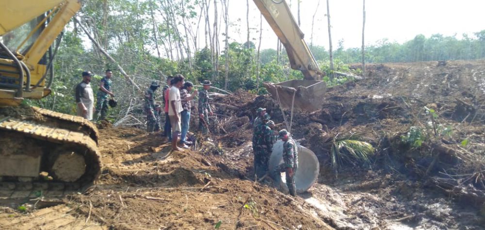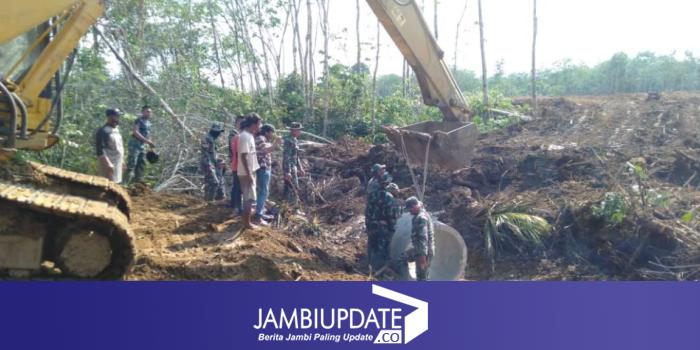 Dan SSK Kodim 0415/Batanghari, Kapten Inf Rilman, menerangkan, bahwa pihaknya telah memulai memasang gorong-gorong dalam jalan penghubung dua desa di Desa Mekarjaya.