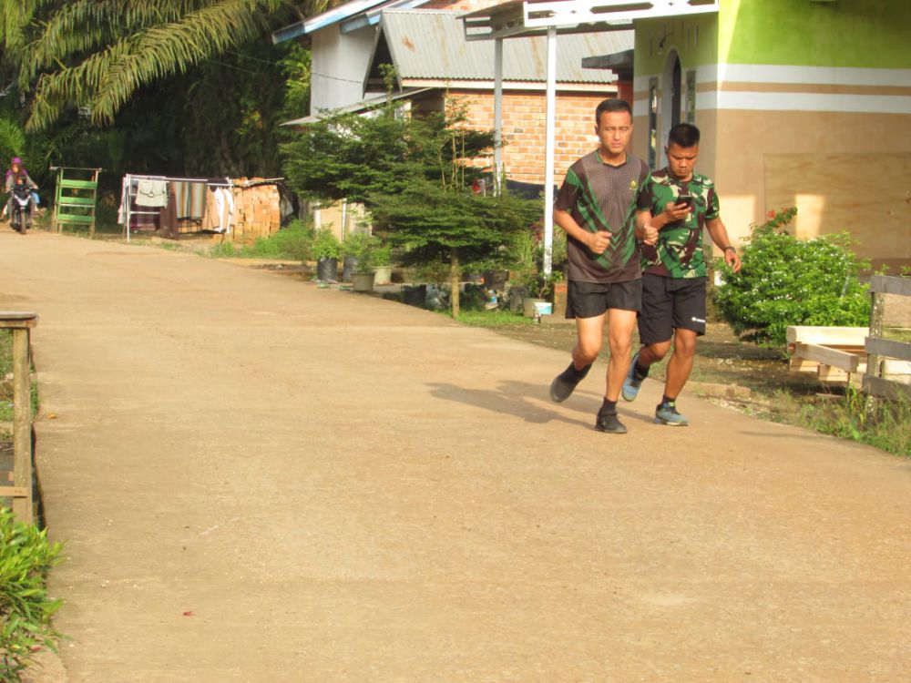 Pantauan di lapangan, Satgas TMMD itu melakukan jogging hingga puluhan Kilometer.