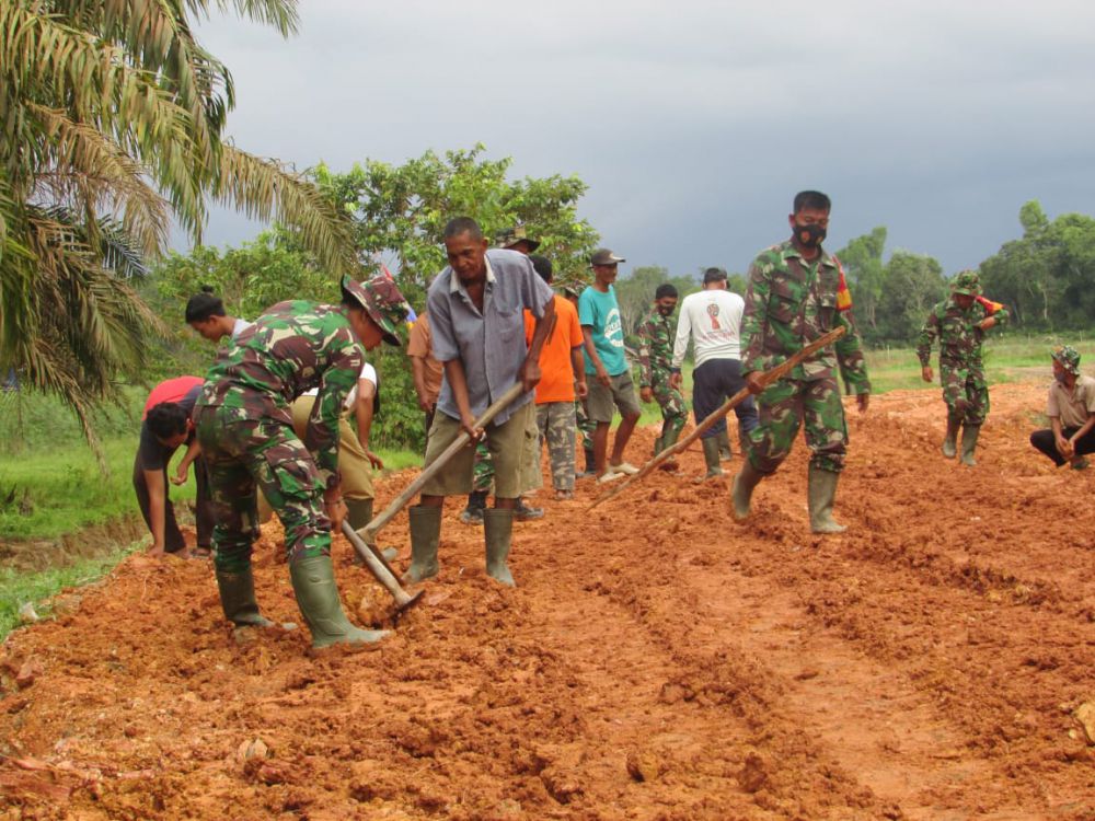 Danton Satgas TMMD, Letda Inf Heri, menerangkan, bahwa pihaknya bersama warga Desa Sungaiterap melakukan perataan jalan dengan alat seadanya.