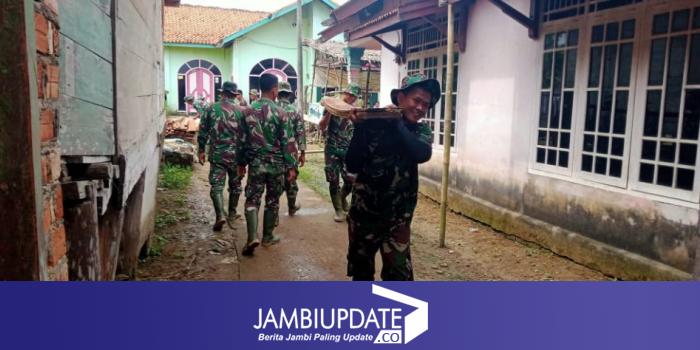 JAMBIUPDATE.CO, JAMBI - Pagi ini, satu rumah yang berada di kawasan RT 05 Desa Sungaiterap, dibedah dalam program TMMD ke 110 Kodim 0415/Batanghari, Kamis (25/3/2021).
