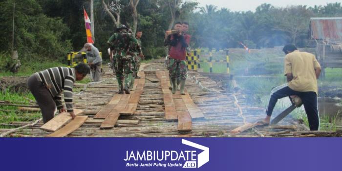 JAMBIUPDATE CO, JAMBI – Sehari sebelum penutupan TMMD, Satgas TMMD ke 110 Kodim 0415/Batanghari, kembali bergotong royong bersama warga Desa Sungaiterap dalam pemasangan papan di galar, Selasa (30/3/2021).