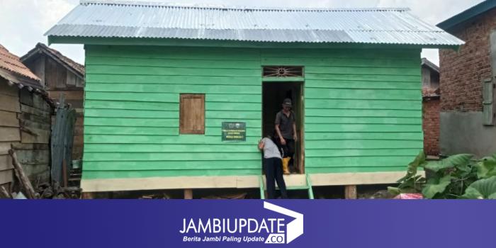JAMBIUPDATE.CO, JAMBI - Tangis haru selimuti wajah Sulaiman warga Desa Sungaiterap, ketika rumahnya selesai dibangun, dalam program TMMD ke 110 Kodim 0415/Batanghari, Selasa (30/3/2021).