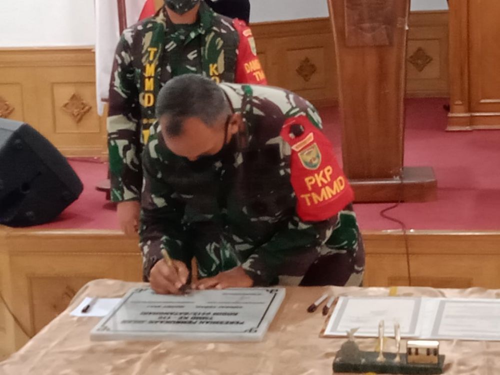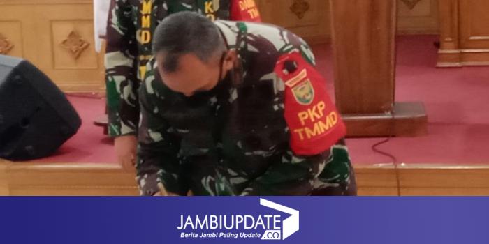 Hal itu setelah ditandatanganinya prasati tugu TMMD, di ruang pola Kantor Bupati Muarojambi.