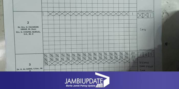 JAMBIUPDATE.CO, KERINCI - Hasil penghitungan suara pada Pemungutan Suara Ulang (PSU) Pemilihan Gubernur dan Wakil Gubernur Provinsi Jambi di TPS 01 di Desa Koto Tuo Ujung Pasir, Kecamatan Tanah Cogok, sudah selesai dilaksanakan pada Kamis (27/05/2021).