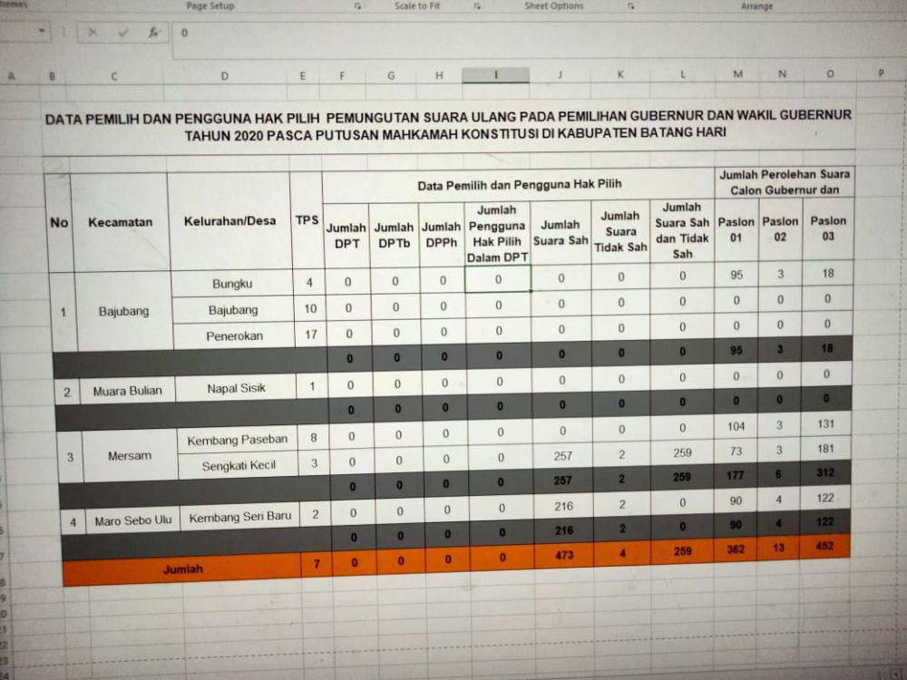 JAMBIUPDATE.CO, BATANGHARI - Hasil penghitungan suara pada Pemungutan Suara Ulang (PSU) Pemilihan Gubernur dan Wakil Gubernur Provinsi Jambi di dua TPS di Kecamatan Mersam sudah selesai, dua TPS tersebut yakni TPS 08 Desa Kembang Paseban dan TPS 03 Desa Sengkati Kecil.Kamis (27/05).