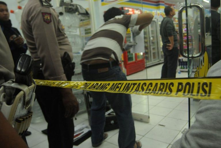 Dua perampok beraksi pada Rabu (26/5/2021) malam. Seorang pelaku memakai seragam Alfamart. Pelaku sukses melumpuhkan dua karyawan dan membawa kabur uang tunai Rp50 juta.