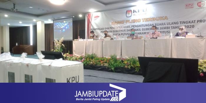 JAMBIUPDATE.CO, JAMBI- Tahapan pleno rekapitulasi penghitungan suara tingkat provinsi kontestasi politik Pemungutan Suara Ulang (PSU) Pemilihan Gubernur Jambi, akan digelar hari ini (3/6).