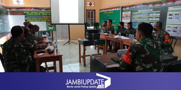 JAMBIUPDATE.CO, JAMBI- Dandim 0420/Sarko Letkol Inf Tomi Radya Diansyah Lubis S.A.P., M. Han selaku Dansatgas TMMD Ke 111 kembali memimpin rapat di kantor Desa Bukit Beringin Kecamatan Bangko Barat Kabupaten Merangin Provinsi Jambi, Senin (12/7/2021).