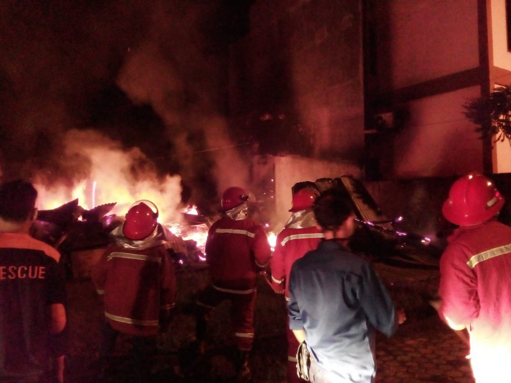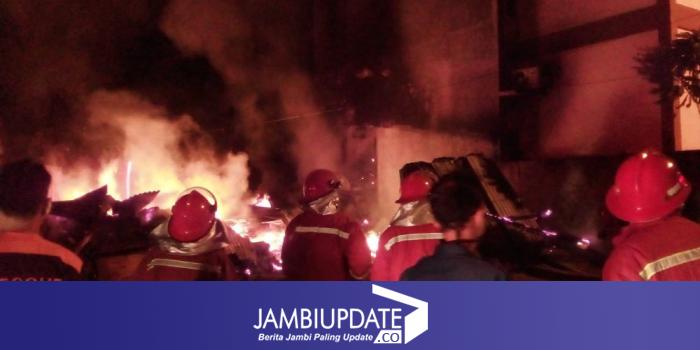JAMBIUPDATE.CO, JAMBI- Salah satu gedung berkas milik Widiyanto habis dilalap api diduga akibat dari konsleting kabel yang ada di dalam gedung itu, Jum'at(6/8) dini hari sekira pukul 03.16 WIB.