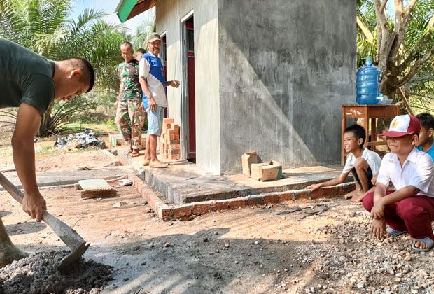 JAMBIUPDATE.CO, TEBO- Kegembiraan siswa Sekolah Dasar (SD) Pembantu di Rt 17 simpang Semangko, Kelurahan Sungai Bengkal, Kecamatan Tebo Ilir, adanya program TMMD ke-112 Kodim 0416/Bute sangat luar biasa.