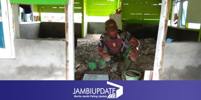 JAMBIUPDATE.CO, TEBO - Satgas TMMD ke-112 Kodim 0416 Bute mulai pemasan keramil masjid Al Muhajirin di RT 17 Simpang Semangko, Kelurahan Sungai Bengkal, Kecamatan Tebo Ilir, Kabupaten Tebo, pada Kamis (30/9/2021).