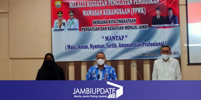 JAMBIUPDATE.CO, JAMBI - Badan Kesatuan Kebangsaan Politik (Bakesbangpol) Provinsi Jambi menggelar rapat koordinasi Penguatan Pendidikan Wawasan Kebangsaan (PPWK). Acara bertempat di aula Bakesbangpol (28/10). Kegiatan ini diikuti oleh 100 peserta dari guru tenaga pendidikan di Provinsi Jambi.