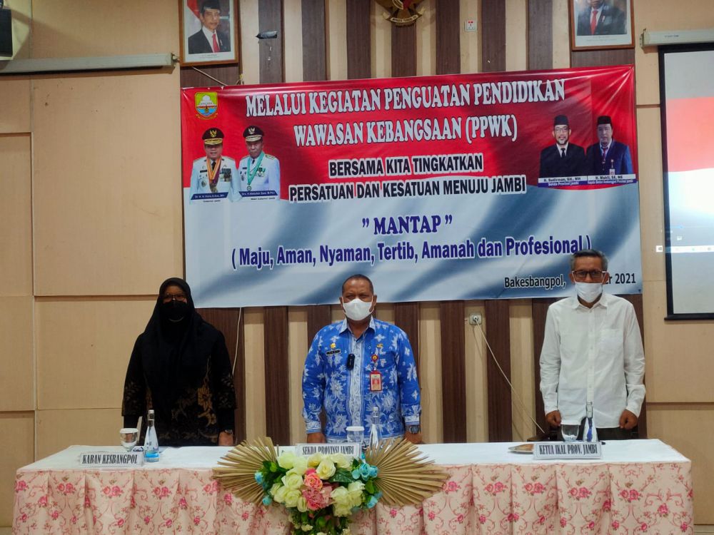 "Saya yakin, seluruh peserta rakor ini yang terdiri dari 100 orang tenaga pendidik se Provinsi Jambi, memiliki niat dan kemauan untuk menerima penguatan pendidikan wawasan kebangsaan, kemudian meneruskannnya kepada anak-anak didik, sehingga penguatan pendidikan wawasan kebangsaan itu semakin menyebar," tambahnya.