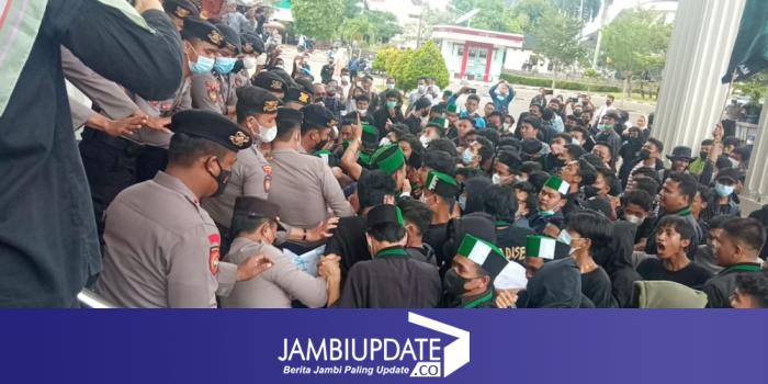 JAMBIUPDATE.CO, JAMBI- Aksi dorong-mendorong tak terhindarkan di depan pintu masuk DPRD Provinsi Jambi (8/11). Himpunan Mahasiswa Islam (HMI) Cabang Jambi meminta masuk ke gedung wakil rakyat untuk melakukan rapat di ruang paripurna.