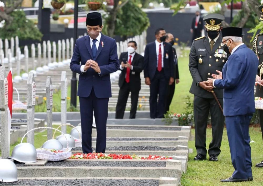 JAMBIUPDATE.CO, JAKARTA – Puncak Peringatan Hari Pahlawan tahun 2021 ditandai dengan pelaksanaan Upacara Ziarah Pahlawan di Taman Makam Pahlawan Nasional Utama (TMPNU) Kalibata. Presiden Joko Widodo hadir selaku inspektur upacara dengan didampingi Wakil Presiden KH Ma’ruf Amin.