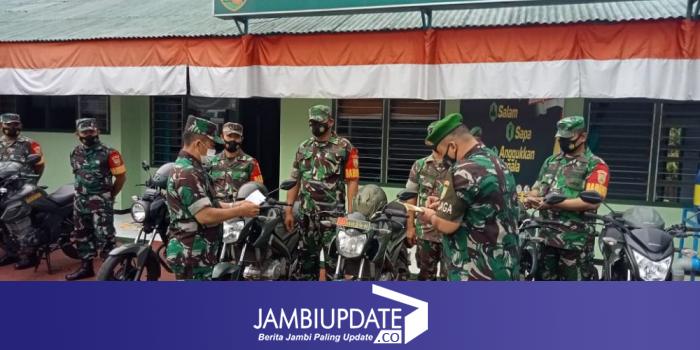 JAMBIUPDATE.CO, JAMBI- Dalam rangka menegakkan dan mewujudkan disiplin berkendara bagi prajurit Koramil 415-09/Telanaipura, Danramil Mayor Inf Widi Purwoko, SE menggelar pengecekan kelengkapan dan kondisi kendaraan yang dipakai oleh anak buahnya, Kamis (09/12).