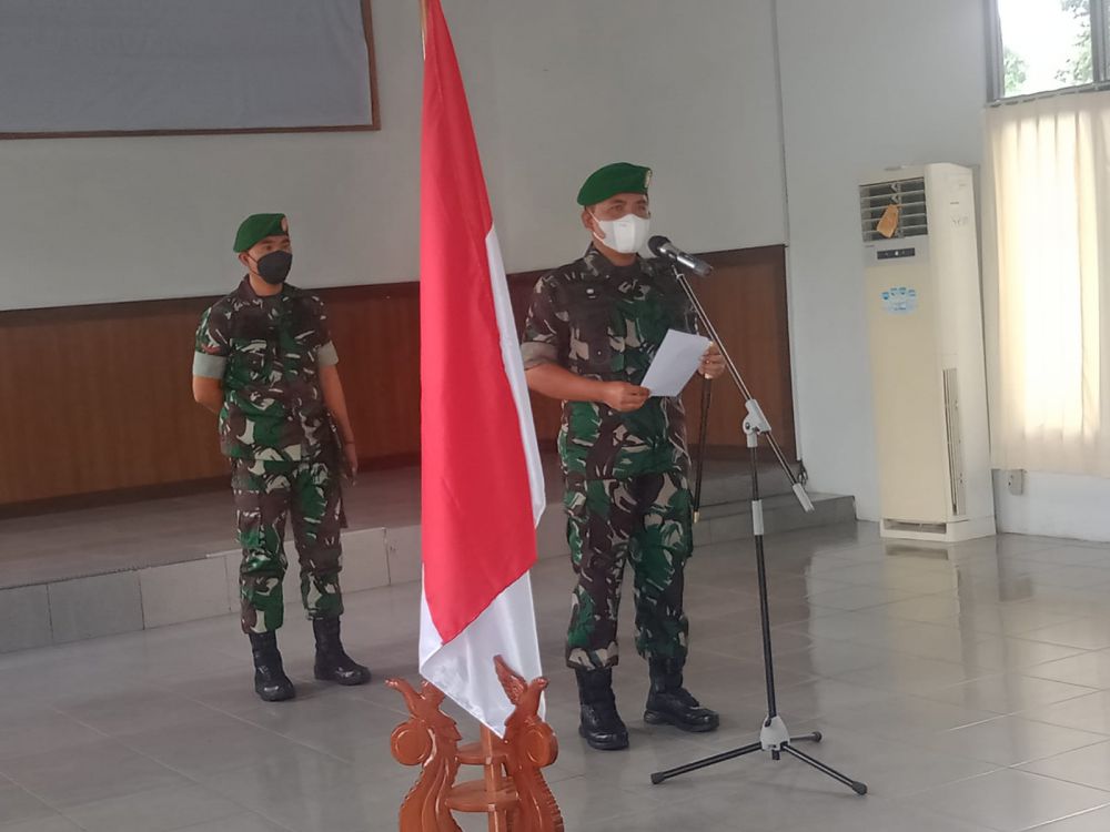 JAMBIUPDATE.CO, JAMBI- Komandan Kodim (Dandim) 0415/Jambi Kolonel Czi Sriyanto melakukan pelepasan personil Kodim 0415/Jambi yang tergabung dalam Satgas Apter Gelombang 2 Kodam XVIII/Kasuari Tahun 2021 di Aula Sultan Thaha, Kodim 0415/Jambi di Jalan Untung Suropati, Kelurahan Jelutung, Kecamatan Jelutung, Kota Jambi, Jumat (10/12/2021).