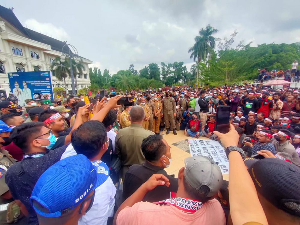 JAMBIUPDATE.CO, JAMBI - Gubernur Jambi Al Haris turun tangan menemui ratusan Aliansi Supir Batubara Provinsi Jambi di lapangan Kantor Gubernur Jambi.
