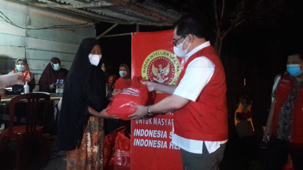 Selain vaksinasi, BIN Daerah Jambi juga memberikan bantuan sembako kepada warga yang menjadi peserta Vaksin yang diberikan langsung oleh Kabinda Jambi. (rhp).